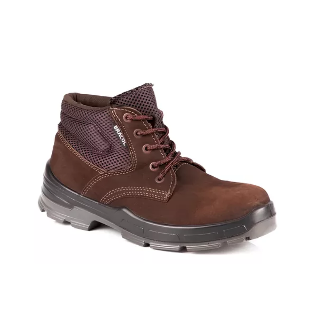 Botina de proteção de amarrar, colarinho acolchoado, confeccionada em nobuck, com forração interna da gáspea em não tecido
